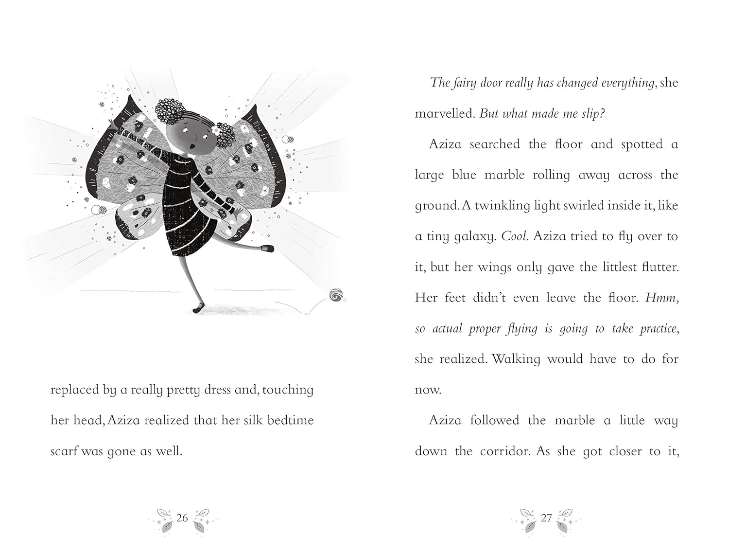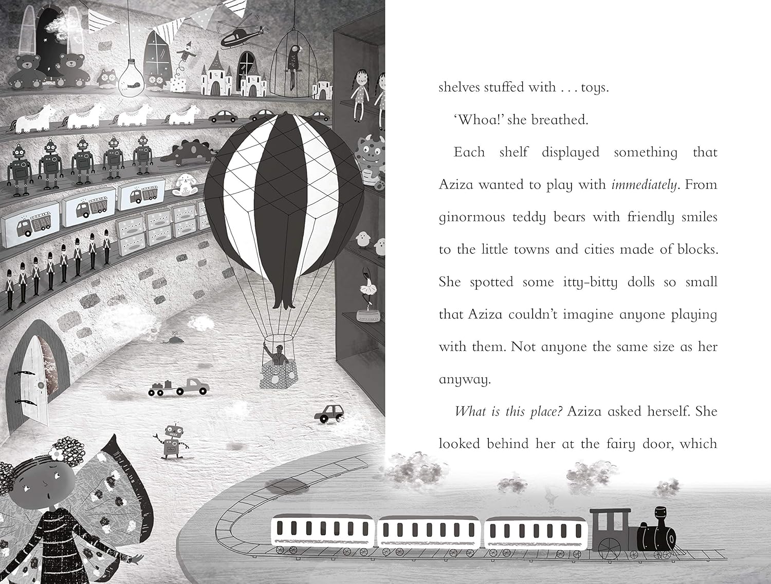 A mysterious gift arrives on Aziza's birthday. It is a secret fairy door that will whisk her away to Shimmerton, a magical world with princesses, naughty fairies, shapeshifters, unicorn shopkeepers and mischief around every corner. But when the precious jewelled doorknob is taken, Aziza is trapped. Will she ever see her home and family again? Maybe her new friends, Peri and Tiko, can help . . .