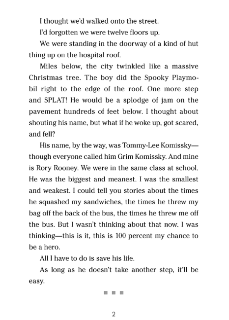 Rory Rooney likes to be prepared for anything. That sort of planning pays off when you're the smallest kid in your class. Rory is even prepared (mostly) for Tommy-Lee, his nemesis, who starts most days by throwing Rory out of the back of the school bus. Don't be scared, his favorite book says, be prepared. And Rory aims to be. What's more heroic than that?