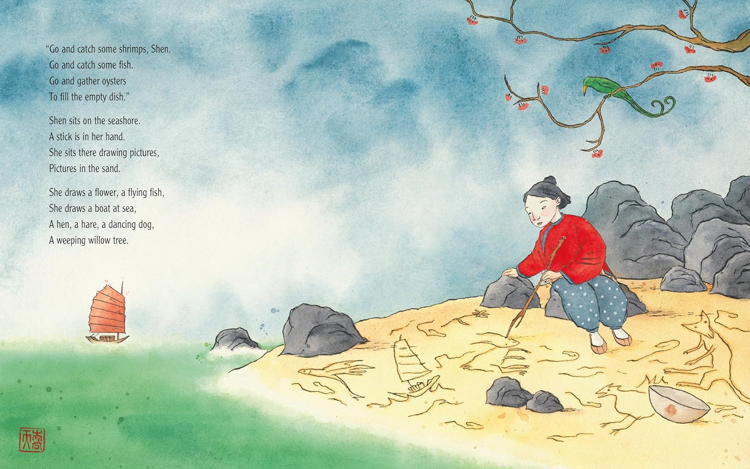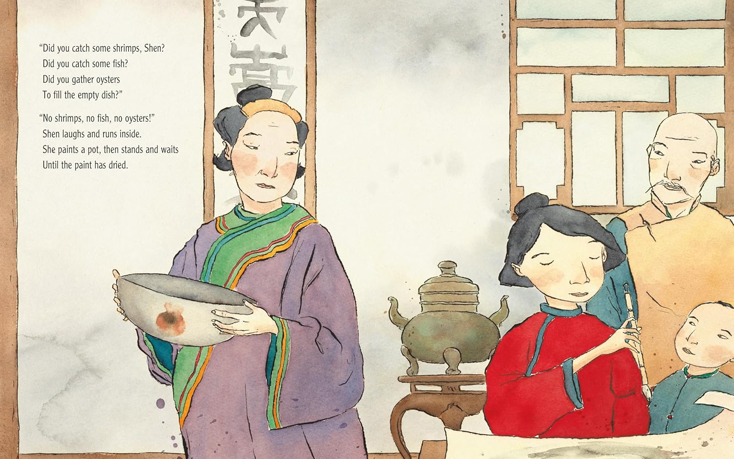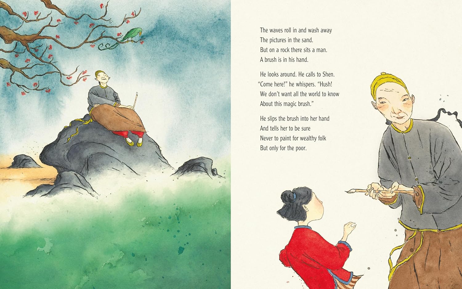 With her magic paintbrush, Shen can paint steaming pots full of fish and oysters to feed the hungry people in her village, but when the evil emperor hears of her gift he commands Shen to paint gold for him instead. She is determined to keep her promise to paint only for the poor, but how can she match the emperor's mighty power?