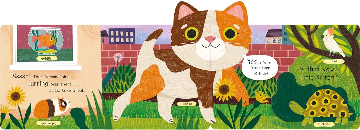 Play a game of hide-and-seek around the house and in the garden to find out Where is Little Kitten? Young children can follow the clues and lift the sturdy flaps with peep-through holes to see if Kitten is hiding underneath. There are lots of animal friends to meet along the way, as well as a surprise pop-up ending to reveal Kitten's hiding place. Bright, bold illustration from Jean Claude makes this an ideal gift purchase for animal-mad toddlers.