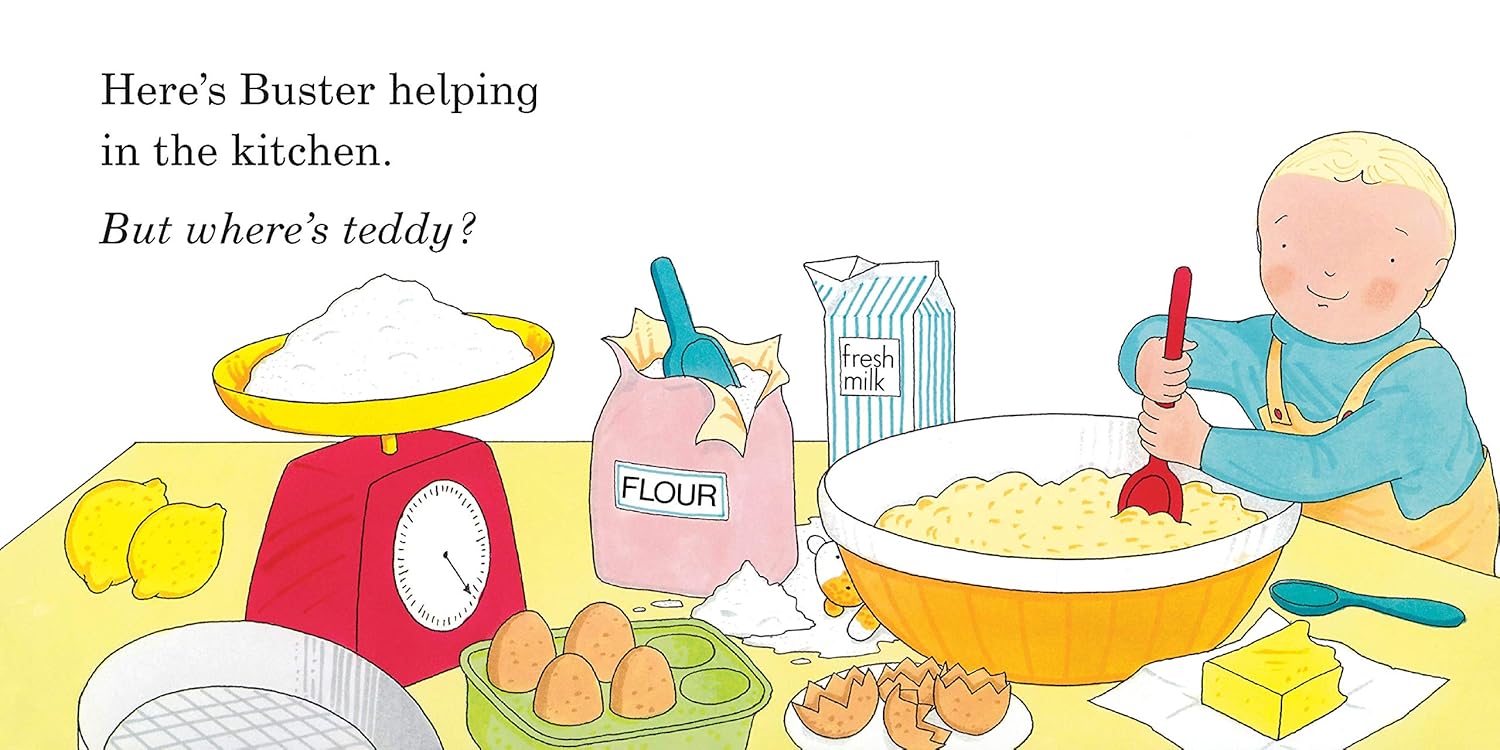 Join in the fun with Where's Teddy? and help find Teddy on every page in this fun lift-the-flap book from the bestselling creator of preschool classic, Dear Zoo. Buster and Teddy go everywhere together. Buster is busy helping out around the house, from baking in the kitchen to helping with the gardening, but where is Teddy hiding? This search-and-find story from the creator of Dear Zoo is sure to delight young children, with a satisfying lift-the-flap ending and a teddy to spot in every scene.
