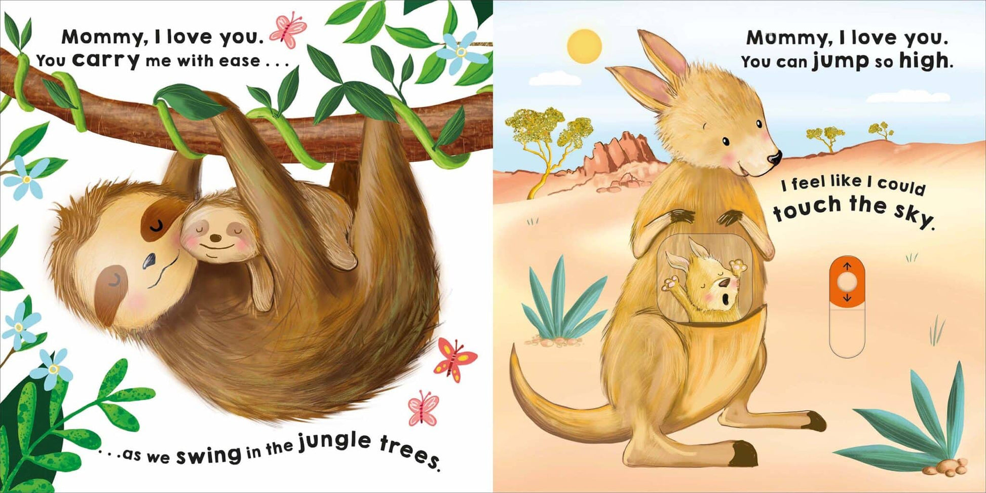 The gentle rhyming text highlights one of the reasons each animal baby loves its mommy. There is a novelty to explore on each page including wheels, pull tabs and sliders which bring the illustrations to life.